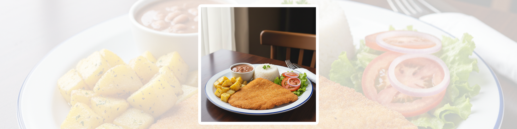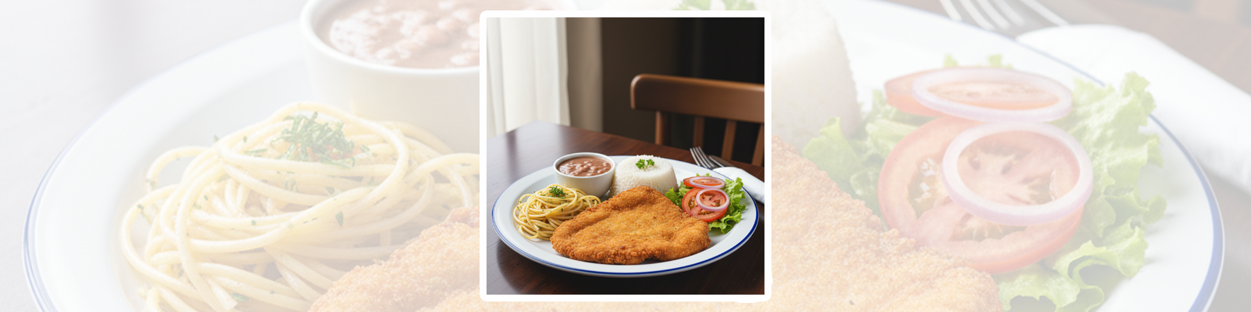 🍗 Frango à milanesaArroz • Feijão • Macarrão ao alho e óleo • Salada